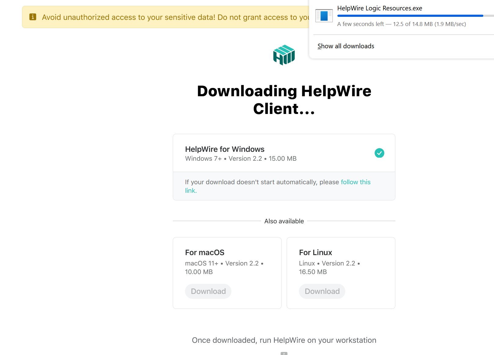 To start a remote support session we need to be in phone contact first. Look for the Helpwire icon on your desktop